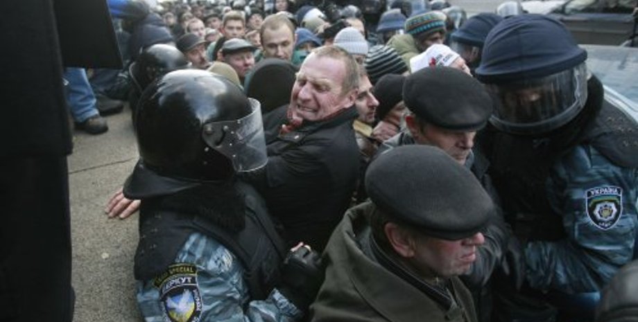 Сотрудники спецподразделения "Беркут" отобрали у народного депутата (фракция "БЮТ-Батьківщина") Наталии Королевской генератор и обогреватель в центре Киева, которые она привезла для голодающих "чернобыльцев"
