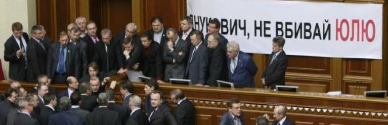 В связи с этим Рада вчера не рассмотрела ни одного из вопросов повестки дня из-за блокирования. После 18:00 БЮТовцы разблокировали президиум и трибуну парламента и покинули сессионный зал. Однако во фракции заявили, что намерены блокировать работу парламента до тех пор, пока не будет выполнено их требование.