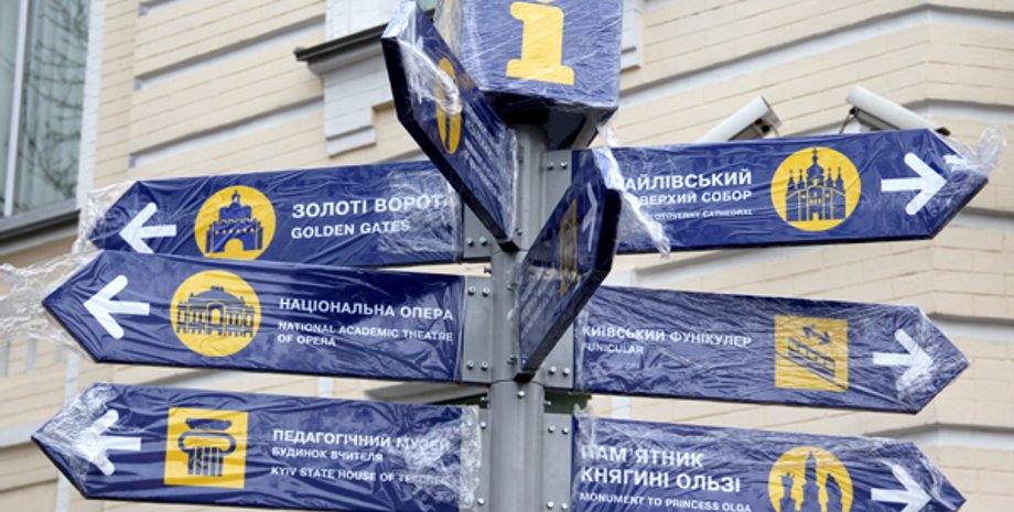 "Всего к Евро-2012 мы планируем установить 180 туристических указателей, которые помогали бы ориентироваться в городе еврофанам и обычным туристам. Эти указатели будут расположены в местах пересечения туристических маршрутов, а это преимущественно центр Киева. На табличках, указывающие направления к объектам осмотра, присутствует транслитерация. На пилонах, кроме указателей, устроена также система ориентирования - большая карта, а центр города на ней изображен в увеличенном масштабе", - рассказал начальник Главного управления коммунального хозяйства Киевской городской госадминистрации Дмитрий Новицкий, сообщает Информационный центр "Украина-2012".