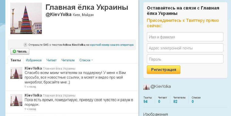 Киевские блогеры завели установленной на Майдане Независимости елке микроблог в социальной сети Twitter