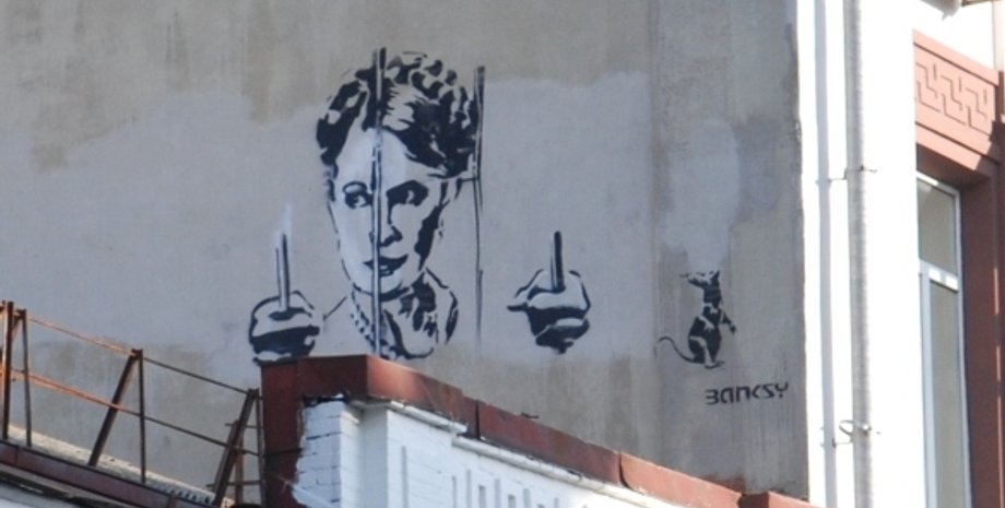 На стене одного из домов по улице Прорезной в Киеве нарисовали портрет Юлии Тимошенко в стиле Бэнкси
