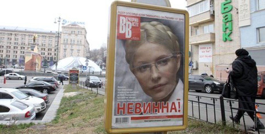 Сегодня, 26 декабря, в Киеве были демонтированы все ситилайты с первой полосой газеты "Вечірні вісті", на которой был изображен портрет Юлии Тимошенко с подписью "Невинна!"