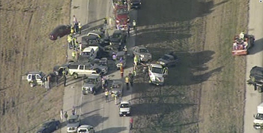 Причиной столкновения автомобилей на техасском шоссе, по предварительным данным, стал сильный туман и возникшая из-за него плохая видимость на дороге.
