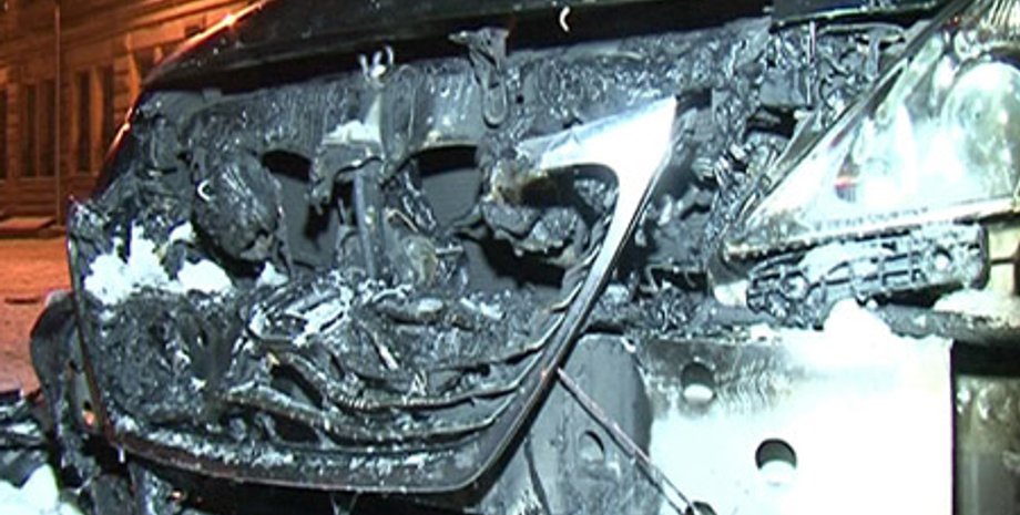 Огонь повредил передний бампер и капот авто.