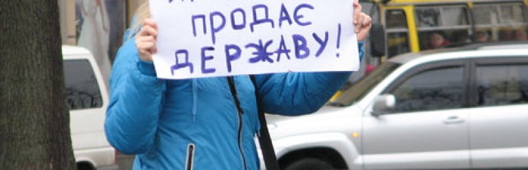 Участники акции отметили, что президент полностью отступился от них в своей деятельности, и под возгласы "Януковичу - красную карточку!", "Выведи их из игры!", потребовали отправить Януковича в отставку.