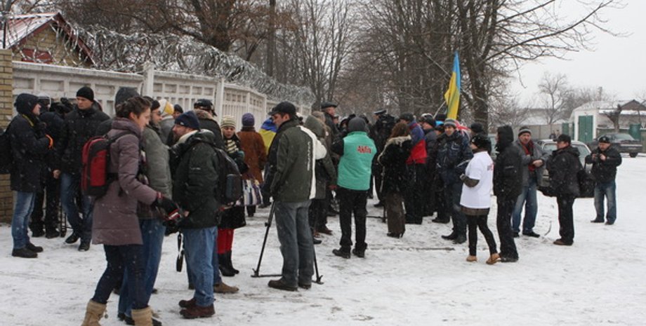 Сейчас рядом с колонией собралось около 50 сторонников Тимошенко. Люди держат символику БЮТ, флаги организации "Батьківщина молода", плакаты с изображением Тимошенко и требуют немедленно освободить экс-премьера.