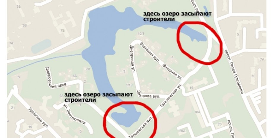 Как сообщил директор Киевского эколого-культурного центра Владимир Борейко, из-за строительных работ на Харьковском массиве, который находится рядом с Позняками, ранее уже пострадало несколько озер.