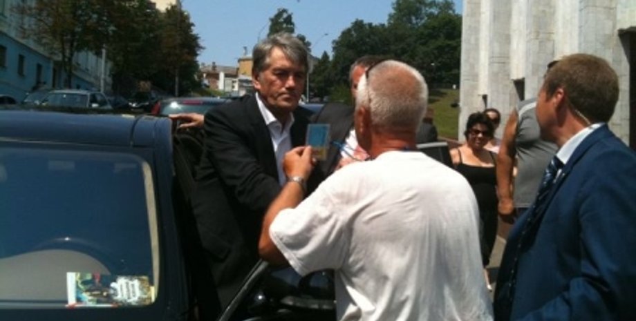 Ющенко находился под Украинским домом несколько минут, поставил подпись и пообщался с участниками акции, пишет УНИАН.