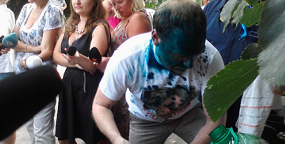 По словам Власенко, молодая девушка с длинными волосами бросила ему в лицо обрезанную пластиковую бутылку с зеленкой, передает Подробности.