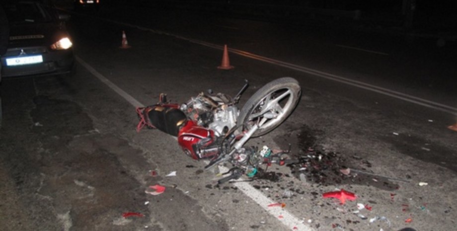 Как сообщалось, сегодня ночью мотоцикл Kawasaki на улице Ревуцкого, 35 на большой скорости потерял управление, зацепил бордюр, и через несколько десятков метров врезался в припаркованный Lanos.
