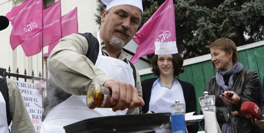 Часть языков активисты нарезали и зажарили на сковородке, которую прихватили с собой. Свое блюдо Братья Капрановы назвали "жареной свободой слова".