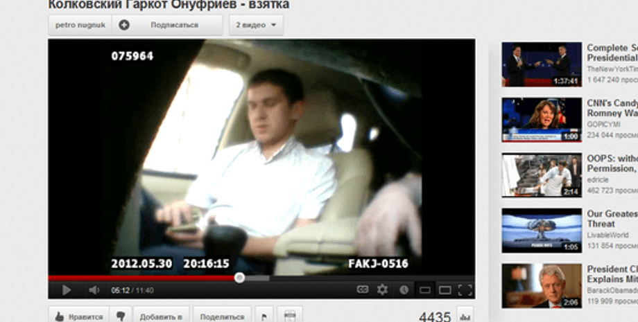 Аккаунт, с которого было загружено видео (petro nugnuk) создан 17 октября, пишет Корреспондент.net. Пользователь указал, что аккаунт зарегистрирован в России. Видео снято с помощью камеры, установленной в автомобиле неизвестного бизнесмена, который пытается договориться с депутатом о решении земельного вопроса. На видео есть титр, указывающий дату записи - 30 мая 2012 года.