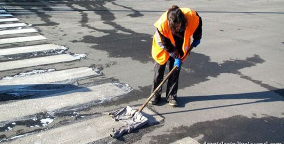 В Донецкой области перед несостоявшимся визитом Азарова уборщицы мыли асфальт шампунем