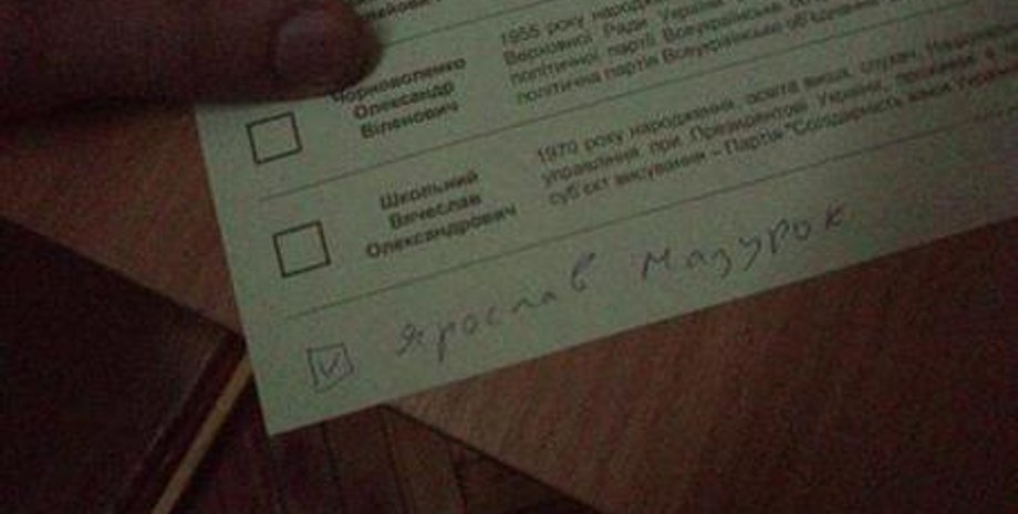 В Киеве один из участников выборов "проголосовал" за так называемого караванского стрелка - Ярослава Мазурка.
