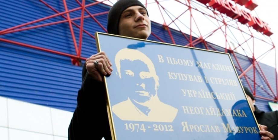 Ранее лидер партии "Братство" Дмитрий Корчинский заявил о желании установить памятную табличку в память о Ярославе Мазурке в здании торгового центра "Караван".