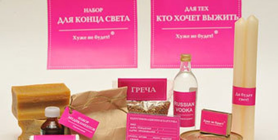 Наборы для встречи конца света поступили в магазины пару дней назад. В комплект входили карточка-напоминалка на тот случай, если владелец спецпакета потеряет память, шпроты, водка, гречка, свечи и спички, блокнот и карандаш для писем в будущее, инструкция с описанием игр, чтобы скоротать время, аптечка, состоящая из активированного угля, бинта и валидола, веревка и мыло. Стоил он 890 рублей.