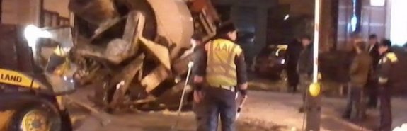 В центре Киева бетономешалка провалилась под землю