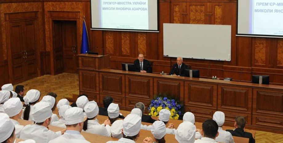 Премьер-министру Украины Николаю Азарову вручили награду почетного профессора Национального медицинского университета имени Богомольца.
