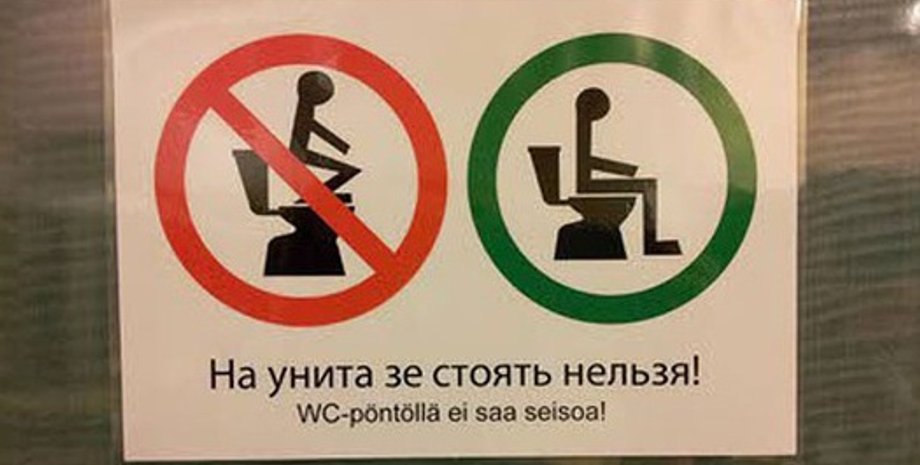 В финской губернии Южное Саво на местных бензозаправочных станциях компании ABC вывесили русскоязычную инструкцию "правильного" пользования унитазами.