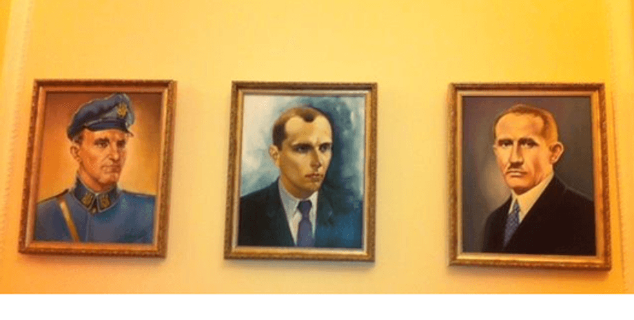 видны портреты Евгения Коновальца, Романа Шухевича и Степана Бандеры.
