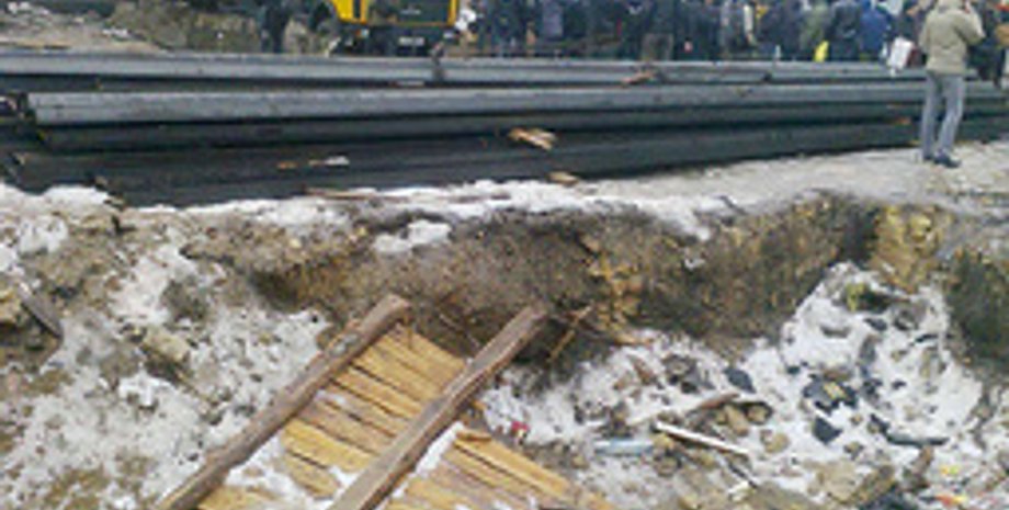 В Киеве протестующие повалили забор вокруг стройки в Десятинном переулке