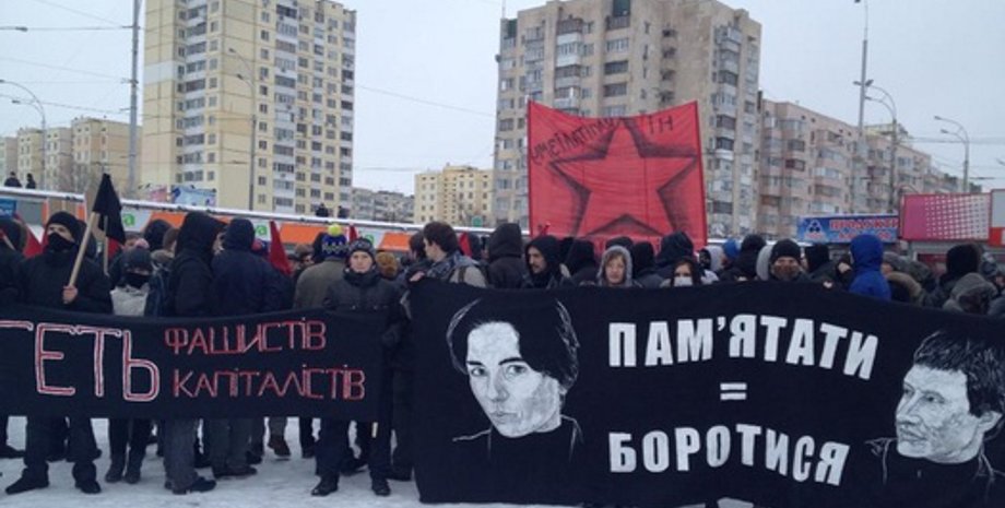 В Киеве около 70 антифашистов провели митинг в память российского правозащитника и адвоката Станислава Маркелова и российской журналистки Анастасии Бабуровой.