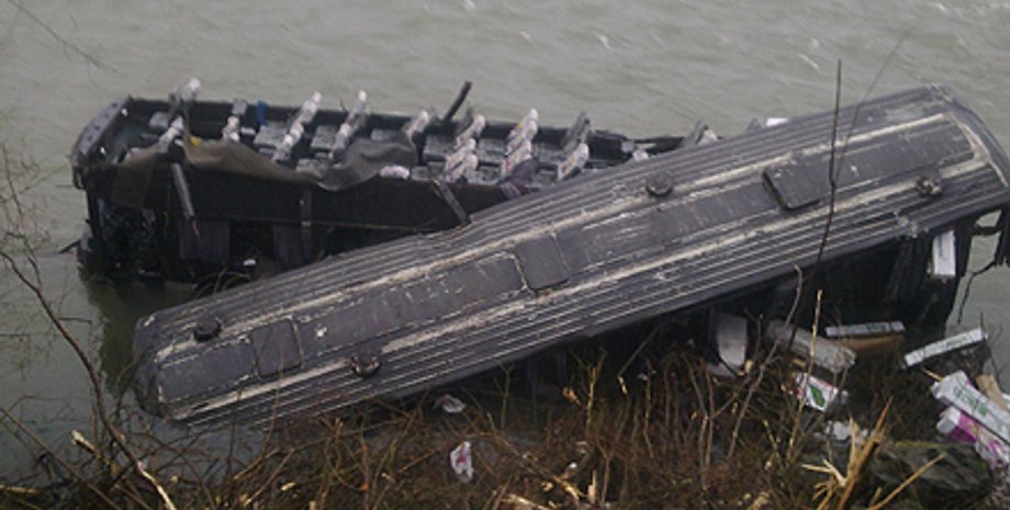 В Хутском районе Закарпатской области рейсовый автобус Киев-Хуст перевернулся и упал в реку