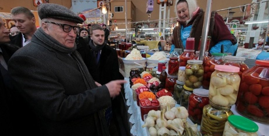 Жириновский купил на Бессарабском рынке сало, варенье и квашеную капусту