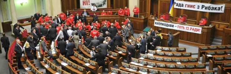 Спикер Верховной Рады Владимир Рыбак заявил, что готов к отставке в случае соответствующего решения парламента. Он также заявил, что исключает силовое разблокирование трибуны и президиума Рады.