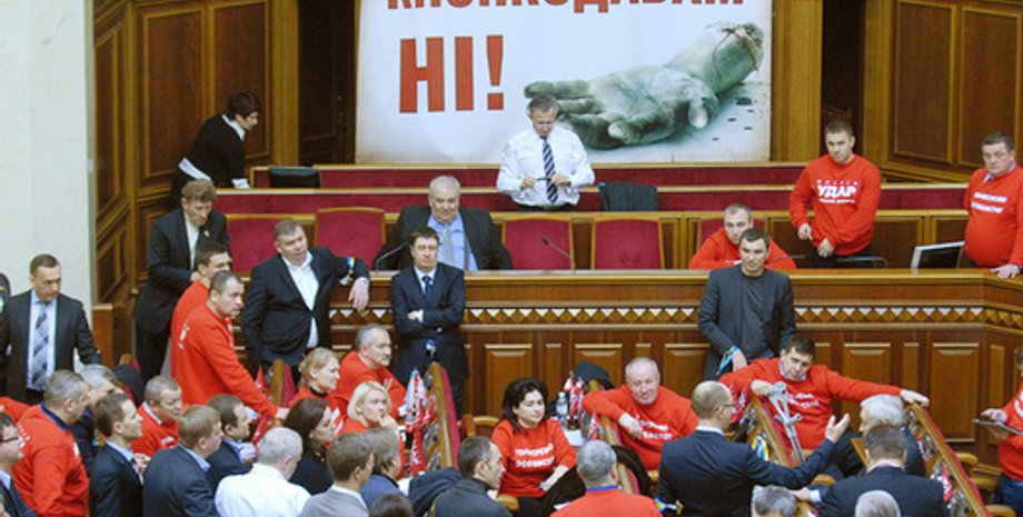 В то же время, депутат от партии Батьківщина Андрей Парубий заявил о готовности оппозиции в любой момент разблокировать трибуну ради голосования за принятие проекта постановления о заявлении ВР об евроинтеграции.