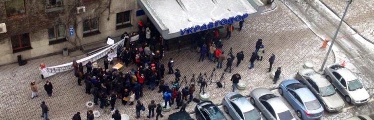 На опубликованных фотографиях видно, что под офисом компании собралось около 50 человек. При этом свое согласие на участие в сегодняшней акции протеста в Facebook подтвердило 906 человек. Митинг начался сегодня около 12:00. Участники обещали принести под Укравтодор автомобильные запчасти, поломавшиеся из-за качества украинских дорог.