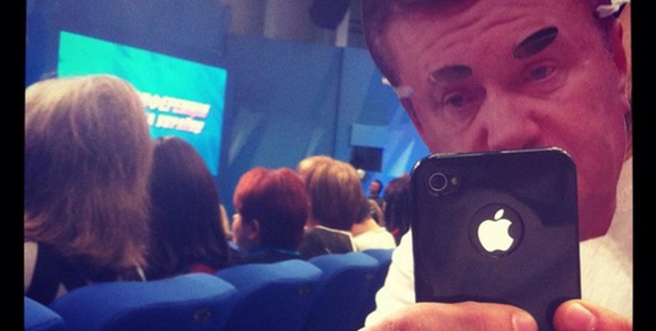 Журналисты, участники движения Стоп цензуре! во время вступительного слова Президента Украины Виктора Януковича на пресс-конференции надели маски с его портретом.