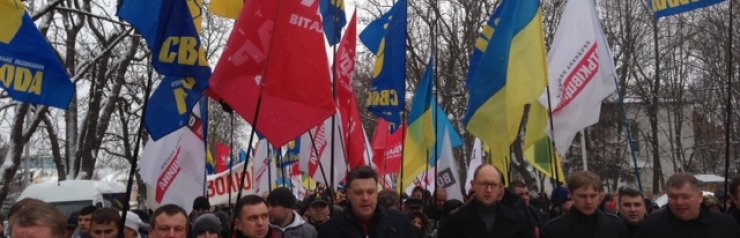 Яценюк и Тягнибок возглавили марш против Януковича в Ужгороде