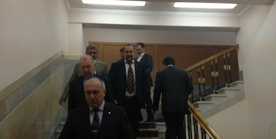 После того, как спикер Верховной Рады Владимир Рыбак был вынужден объявить перерыв, депутаты удалились из сессионного зала