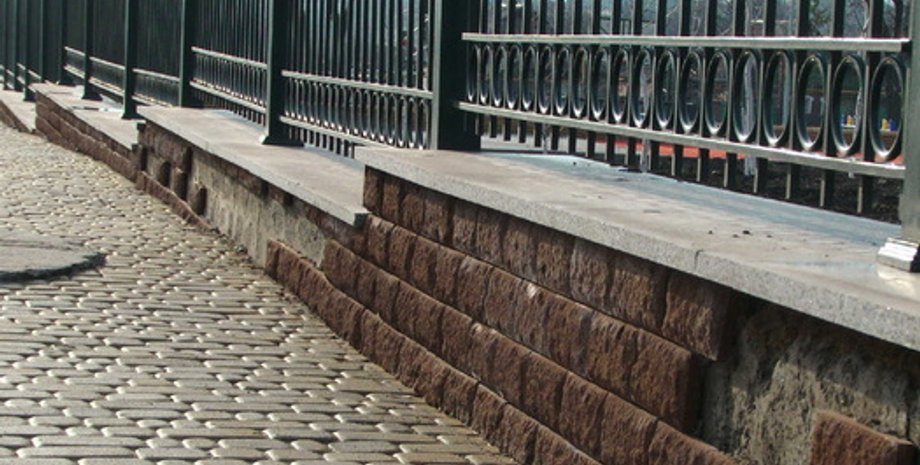Плитка с забора вокруг школы Януковича, начала осыпаться спустя полгода после строительства