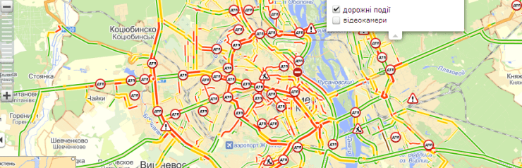 Наиболее осложнено движение в центре столицы. Пробки на проспекте Победы, ул. Телиги, ул. Гетьмана, Чоколовском бульваре, Краснозвездном проспекте, Воздухофлотском проспекте, улице Мельникова, Набережном шоссе, Московском проспекте.