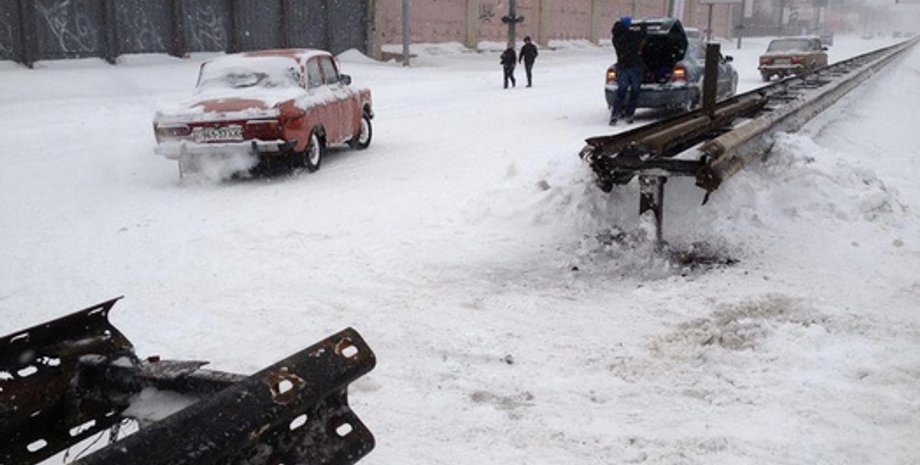 В Киеве на Шулявке водители спилили отбойник, чтобы выбраться из пробки