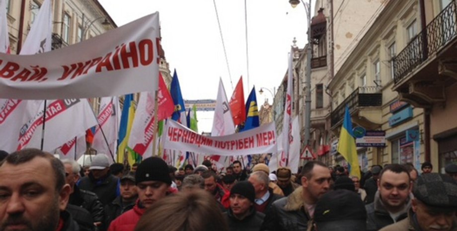 В эти минуты акция протеста проходит на центральной площади Черновцов у памятника Тарасу Шевченко. В акции принимают участие лидеры оппозиции Арсений Яценюк и Олег Тягнибок, а также народные депутаты Украины, представители оппозиционных фракций в парламенте Оксана Продан, Максим Бурбак, Руслан Зелик, Николай Федорук и другие.