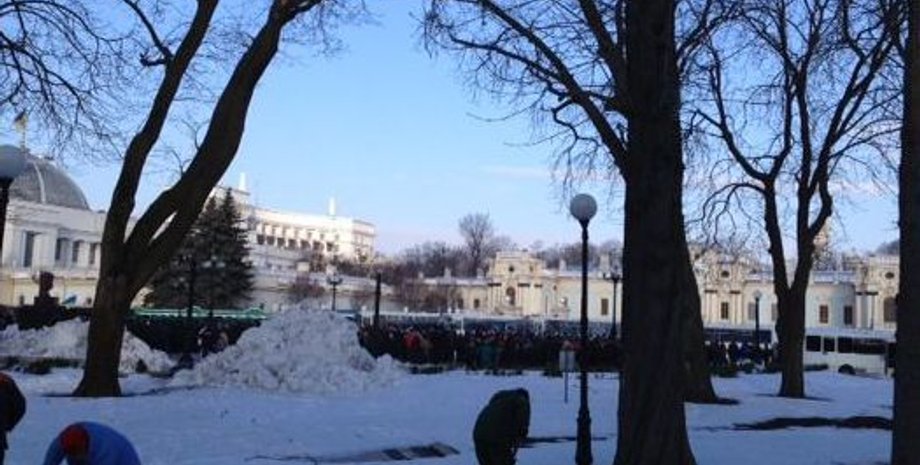 Гриценко: Выборы мэра Киева пройдут летом, если сто тысяч киевлян выйдут на улицуПлощадь перед ВР уже заполняется протестующими, большинство еще идет к месту встречи через Мариинский парк. Кроме того, милиционеры стоят на входах в Мариинский, но документы пока не проверяют.