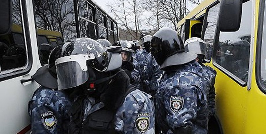 На улицу Банковую заехали несколько автобусов с сотрудниками спецподразделения милиции Беркут