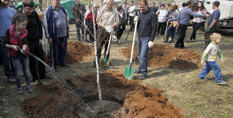 Во время всеукраинского субботника, посвященного акции За чистую окружающую среду, вице-премьер-министр Украины Александр Вилкул и глава КГГА Александр Попов в парке им. Тараса Шевченко вместе с киевлянами высадили саженцы клена.