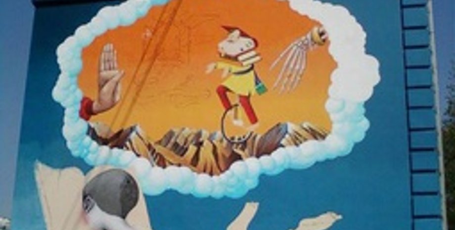 В Киеве французский и украинский художники разрисовали фасад одного из корпусов Киево-Могилянской академии на Подоле, сообщает издательство Грани-Т.
