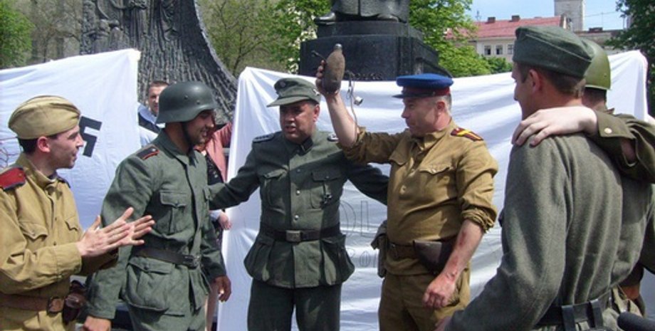 Как сообщили в Свободе, самодеятельные актеры, среди которых депутаты местных советов от партии, переодетые в костюмы красноармейцев, энкаведистов, эсэсовцев, "показали суть Второй мировой войны, во время которой тираны ценой миллионов человеческих жизней захватывали чужие земли".