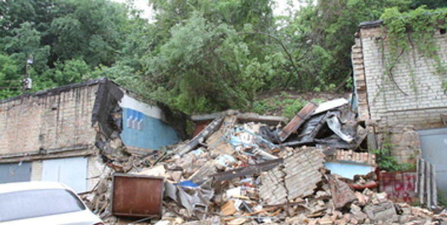 В результате оползня в Шевченковском районе Киева на улице Петровской, были разрушены 12 гаражей