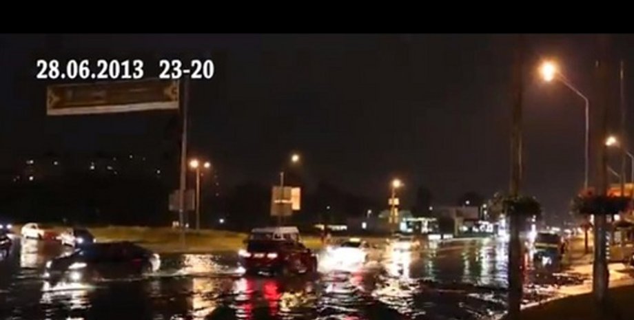 Как передает ТСН, "масштабные озера образовались в разных районах города, в частности - в районе станции метро Черниговская, на улице Эспланадной в центре города, а также на центральном автовокзале на Московской площади. Авто переплывали лужи по фары в воде, превратившись в "амфибии"".