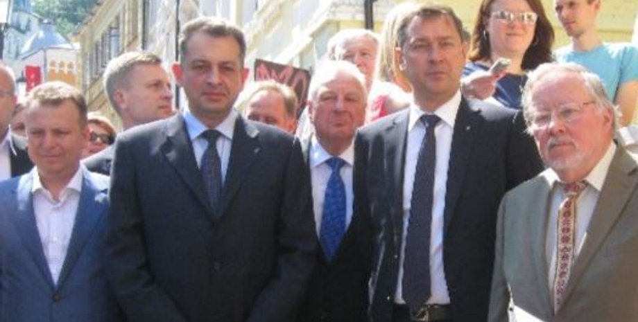 В открытии памятного знака также приняли участие Чрезвычайный и Полномочный Посол Литовской Республики в Украине Пятрас Вайтекунас, депутат Европейского парламента от Литвы профессор Витаутас Ландсбергис, заместитель министра иностранных дел Украины Андрей Олефиров, депутат Сейма Литовской республики Бронюс Паужи, который возглавляет в литовском парламенте депутатскую группу дружбы с Украиной, и депутат Верховной Рады Украины Руслан Лукьянчук, который возглавляет в украинском парламенте аналогичную группу дружбы с Литвой.