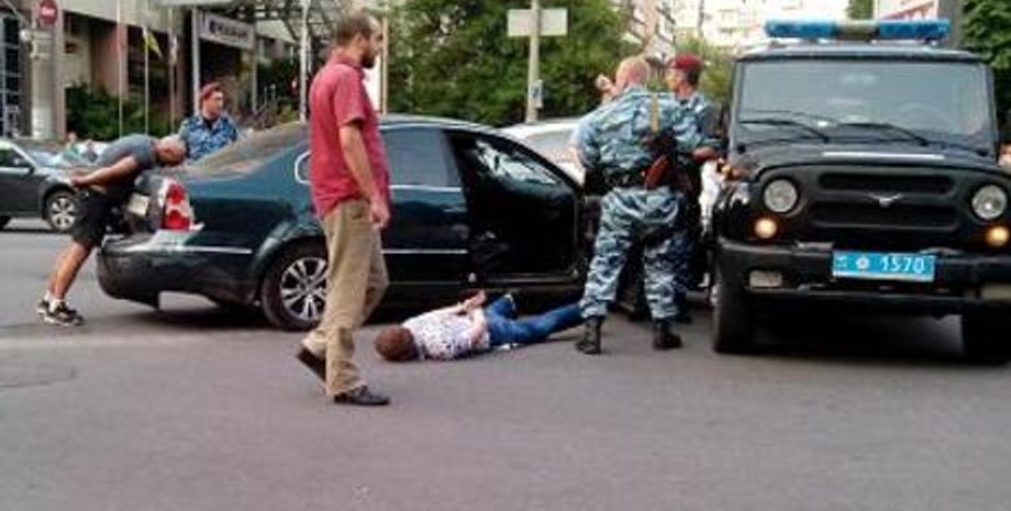 Накануне, 10 июля, в 19:15 на перекрестке улиц Антоновича и Лабораторной в центре Киева патруль отряда специального назначения Беркут со стрельбой задержал двух граждан, пытавшихся скрыться на авто.