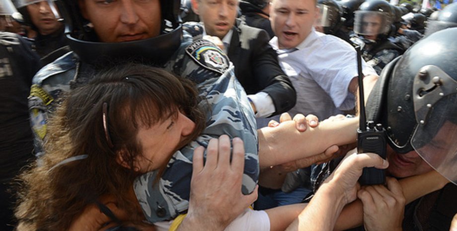 Напомним, 11 июля, около 200 сотрудников спецподразделения Беркут оттеснили протестующих депутатов и журналистов с крыльца Киевсовета. Во время потасовки лидеру фракции Батьківщина Арсению Яценюку разбили очки.