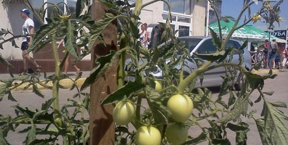 В Артиллерийской бухте Севастополя на газоне у причала, где останавливается паром, в клумбах растут помидоры, сообщает 0692.ua.