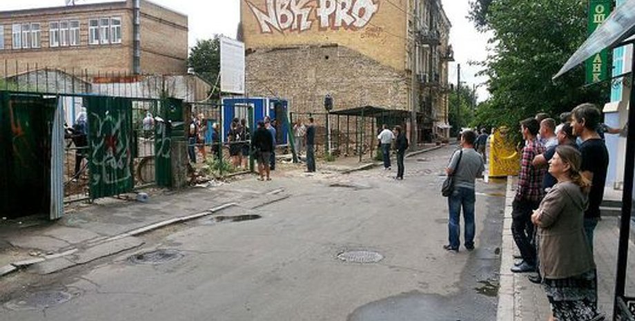 Киевляне штурмом заняли территорию строительства на Десятинном переулке